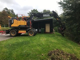 MA Schakt var här i fredags och rättade till slukhålet som uppstod efter ett av sensommarens väldiga regn. Hålet fylldes med massor av makadam och som avslutning lades jord ovanpå.